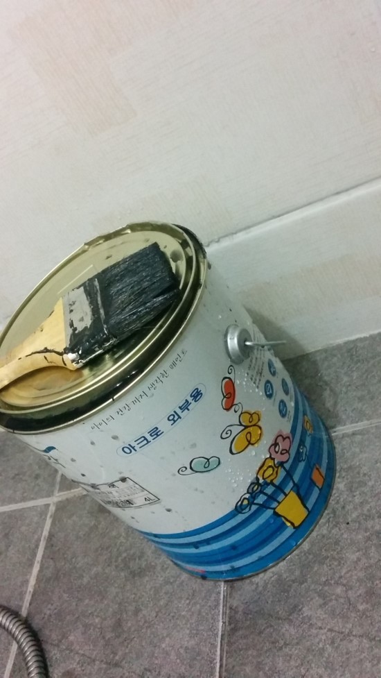 바케스에 붓고 물약간첨가- 그래야 잘 발린다. 유성페인트에 신나붓는거나 같음
